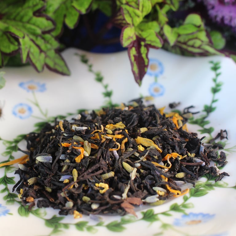 Black Tea, Lavender, Calendula Petals, Osmanthus, Natural & Artificial Flavors.